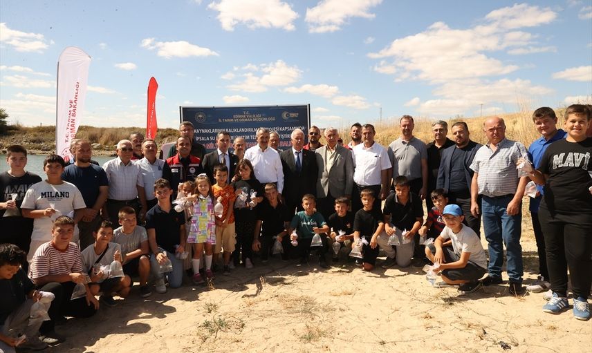 Edirne Valisi Yunus Sezer, Tarım ve Orman Bakanlığının "Su Kaynaklarının Balıklandırılması" Projesi kapsamında Havsa ilçesine bağlı Osmanlı köyünde çocuklarla 30 bin pullu sazan yavrusunu gölete bıraktı.