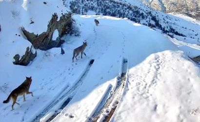 Elazığ'ın Baskil ilçesinde, yerleşim yerinin yakınında devriye gezen kurtlar güvenlik kameraları tarafından kaydedildi. Kar yağışı ve soğuk hava koşuları, yaban hayatını olumsuz yönde etkileyerek bu tür durumların yaşanmasına sebep oluyor.