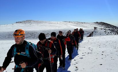 AFAD çalışanları, Erek Dağı'ndaki çadırda gece kamp yaparak zirve tırmanışına başladılar. Ardından Bitlis'e geçerek 4 bin 58 metre yüksekliğindeki Süphan Dağı bölgesine ulaştılar.