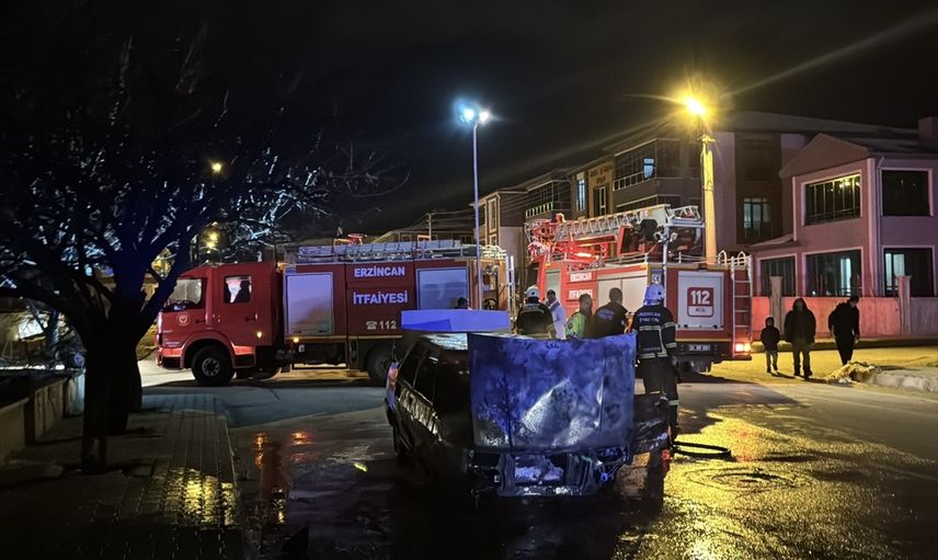 Erzincan'da seyir halindeyken alev alan otomobil kullanılamaz hale geldi.