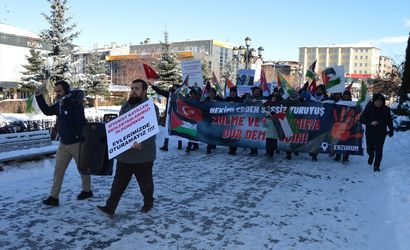 Erzurum'da, sağlık sektörü çalışanları dondurucu soğuk koşullarına rağmen Gazze'de yaşanan saldırılara dikkat çekmek için yürüyüş düzenledi. Protesto, 57. haftasında gerçekleştirildi.