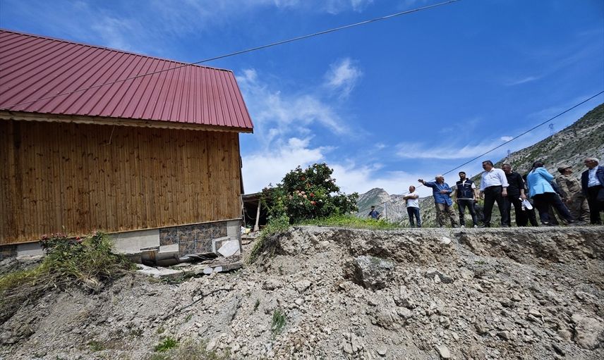 Vali Mustafa Çiftçi, toprak kayması sonrasında Şelale mevkisinde incelemeler gerçekleştirerek, zarar gören evler ve altyapı hakkında bilgi aldı.