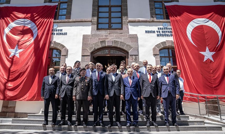 Erzurum Kongresi'nin 105. yıl dönümü dolayısıyla kutlama töreni düzenlendi. Erzurum Kongre Binası'nda sona eren programın ardından protokol üyeleri hatıra fotoğrafı çektirdi. Programda Vali Mustafa Çiftçi (önde sağ 4), Büyükşehir Belediye Başkanı Mehmet Sekmen (önde sağ 3), Türkiye Büyük Millet Meclisi (TBMM) Başkanlık Divanı Üyesi ve AK Parti Kütahya Milletvekili Adil Biçer (önde sol 4), kurum müdürleri, askerler, gaziler, siyasi parti ile sivil toplum kuruluşu temsilcileri ve vatandaşlar yer aldı.