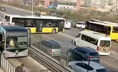 D-100 kara yolu Haramidere mevkisinde, 34 HO 1660 plakalı İETT otobüsünün sürücüsü yolcu almak üzere durduğu sırada, henüz belirlenemeyen bir nedenle otobüs geri kaymaya başladı. Geri geri giden otobüs, arkada bekleyen bir minibüs ve taksiye çarptı. Çarpmanın ardından otobüs, refüjü geçerek D-100 kara yoluna ulaştı.