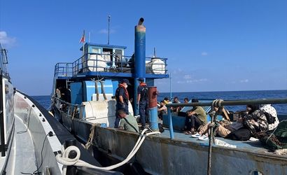 Muğla'nın Fethiye ilçesi açıklarında, bölgedeki sahil güvenlik ekipleri, bir balıkçı teknesinde 120 düzensiz göçmenin bulunduğunu tespit etti.