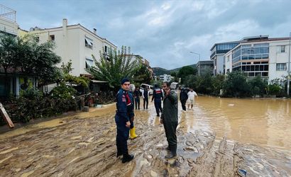 İzmir'in Foça ilçesinde etkili olan sağanak nedeniyle dere taştı, bazı ev ve iş yerlerini su bastı. Şiddetli yağış nedeniyle cadde ve sokaklarda su birikintileri oluştu.