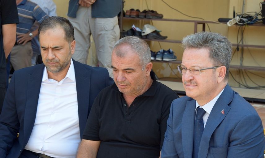 Şırnak'ta Gabar Dağı'ndaki petrol sahasında sondaj kulesinin devrilmesi sonucu enkaz altında kalarak hayatını kaybeden mühendis Mehmet İrfan Güler, memleketi Manisa'da son yolculuğa uğurlandı. Enerji ve Tabii Kaynaklar Bakan Yardımcısı Ahmet Berat Çonkar (solda) ve Manisa Valisi Enver Ünlü (sağda), baba İbrahim Güler'e (ortada) başsağlığı dileklerinde bulundu.
