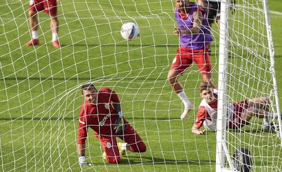 Galatasaray, Trendyol Süper Lig'in 38. haftasında RAMS Başakşehir ile yapacağı maçın hazırlıklarını Kemerburgaz Metin Oktay Tesisleri'nde sürdürdü. Çalışmaya Galatasaray oyuncuları Dries Mertens (solda), Victor Osimhen (sol 2), Davinson Sanchez (sağda) ve Przemyslaw Frankowski de (sağ 2) katıldı.