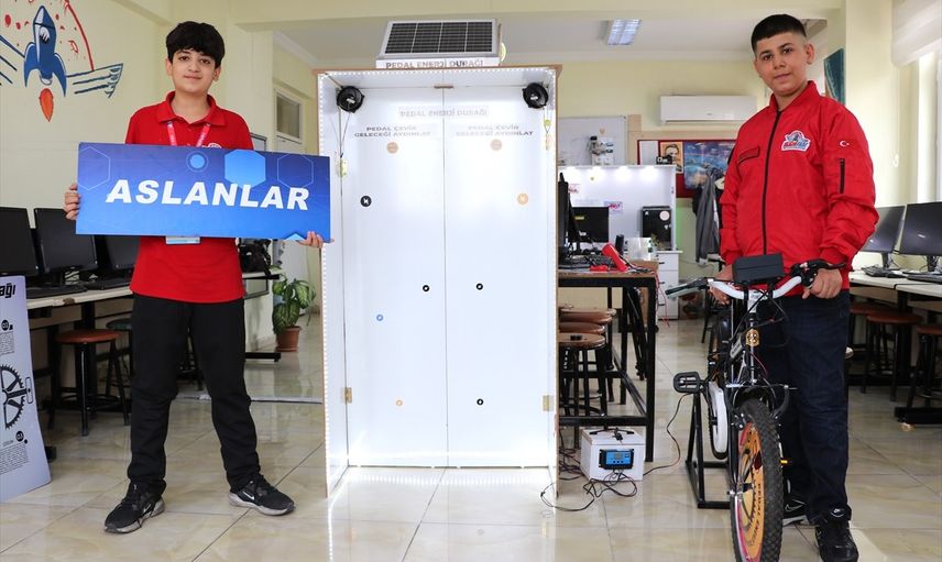 Gaziantep'te ortaokul öğrencileri, sınıflarına yerleştirilen bisikletlerle pedal çevirerek hem elektrik üretiyor hem de okuldaki bazı alanların aydınlatılmasına katkı sağlıyor.