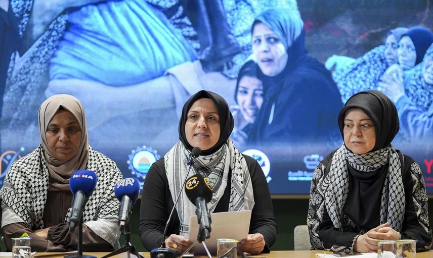 Filistinli kadınlardan Rabab Awad, İsrail'in saldırılarının yanı sıra açlık ve kuşatma gibi insanlık dışı uygulamalara maruz kalan Gazze kadınlarının sesini duyurmak için burada olduklarını ifade etti. Awad, kadınların her gün ölümle yüz yüze kaldığını dile getirdi.