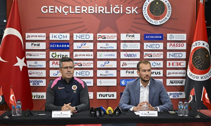 Trendyol Süper Lig ekiplerinden Gençlerbirliği'nin basın sözcüsü Aykut Çakmaklı (sağda), hakem hataları nedeniyle 7 haftada 8 puan kaybettiklerini savundu. Aykut Çakmaklı ve başkent ekibinin teknik direktörü Hüseyin Eroğlu (solda), Beştepe İlhan Cavcav Tesisleri'nde basın toplantısı düzenledi.