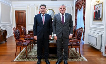 Gençlik ve Spor Bakanı Osman Aşkın Bak (sağda), Adalet Bakanı Yılmaz Tunç'u (solda) ziyaret etti.