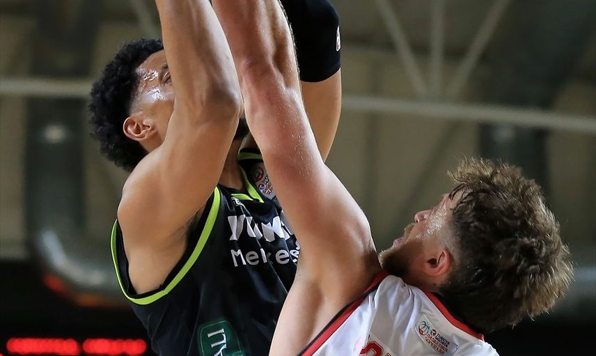 Türkiye Sigorta Basketbol Süper Ligi’nin 5. haftasında Glint Manisa Basket ile Yukatel Merkezefendi Belediyesi Basket, Muradiye Spor Salonu’nda karşılaştı. Bir pozisyonda Yukatel Merkezefendi Belediyesi Basket’ten Mahir Ağva (46), rakibiyle mücadele etti.