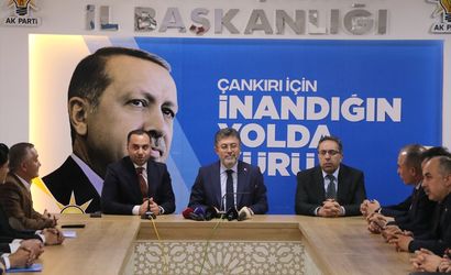Tarım ve Orman Bakanı İbrahim Yumaklı, çeşitli temaslarda bulunmak için geldiği Çankırı'da, AK Parti İl Başkanlığı'nı ziyaret etti. Bakan Yumaklı, burada konuşma yaptı.