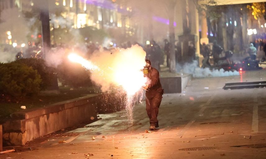 Dün gece başkent Tiflis'te binlerce kişi, parlamento binasının önünde bir araya gelerek protesto gösterisi düzenledi. Göstericiler, polisin geniş güvenlik önlemleri aldığı alana havai fişek ve taş atarak, gerginliğin tırmanmasına neden oldu. Bu durum üzerine polis de göz yaşartıcı gaz ve tazyikli su ile müdahil oldu.