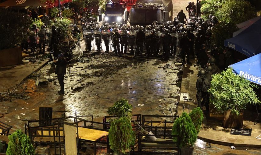 Göstericilerin binaya izinsiz girmeye çalışması üzerine, güvenlik güçleri biber gazı kullanarak müdahale etti. Olay yerine takviye tazyikli su aracı da gelerek güvenlik tedbirlerini artırdı. Orbeliani Meydanı'nda ise çatışmalar devam etti.