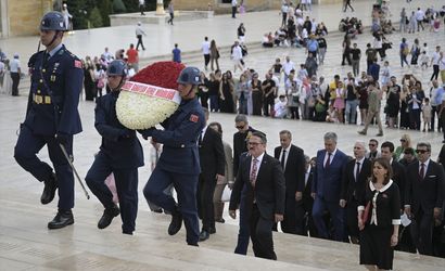 Aslanlı Yol boyunca yürüyerek Büyük Önder Mustafa Kemal Atatürk'ün mozolesine ulaşan heyet, Belviranlı'nın Mozoleye çelenk bırakmasının ardından saygı duruşunda bulunarak saygılarını sundu.