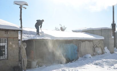 Hakkari'nin Yüksekova ilçesinde vatandaşlar, yoğun kar yağışı sonucu ev ve iş yerlerinin çatılarında biriken karı temizledi.