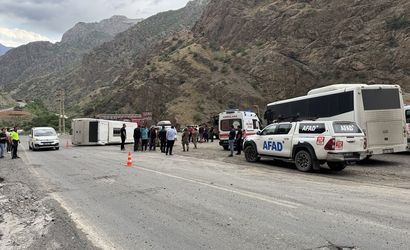Hakkari'de, askeri personeli taşıyan bir midibüs devrildi. Olay sırasında 12 asker hafif yaralar aldı. Kazanın meydana geldiği yer, Hakkari-Çukurca kara yolunun 10. kilometresi olarak belirlendi.