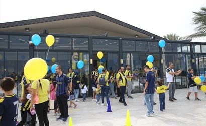 Hatay'ın İskenderun ilçesinde yakalandığı beyin kanserini tedavi sonucu atlatan Fenerbahçeli 3 yaşındaki Tamer Talha Oğuz (sağ2) için bir araya gelen taraftarlar, gökyüzüne sarı ve lacivert balonlar bıraktı.