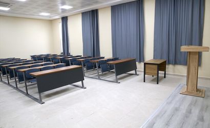 Kahramanmaraş merkezli 6 Şubat 2023'teki depremlerden etkilenen Hatay Mustafa Kemal Üniversitesi (HMKÜ) kampüsünde inşa edilen merkezi derslik, yüz yüze eğitimde kolaylık sağlıyor.