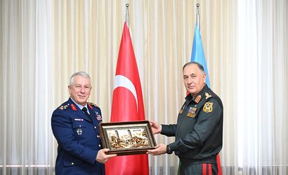 Hava Kuvvetleri Komutanı Orgeneral Ziya Cemal Kadıoğlu (solda), Azerbaycan'da Savunma Bakanı Zakir Hasanov'la (sağda) görüştü.