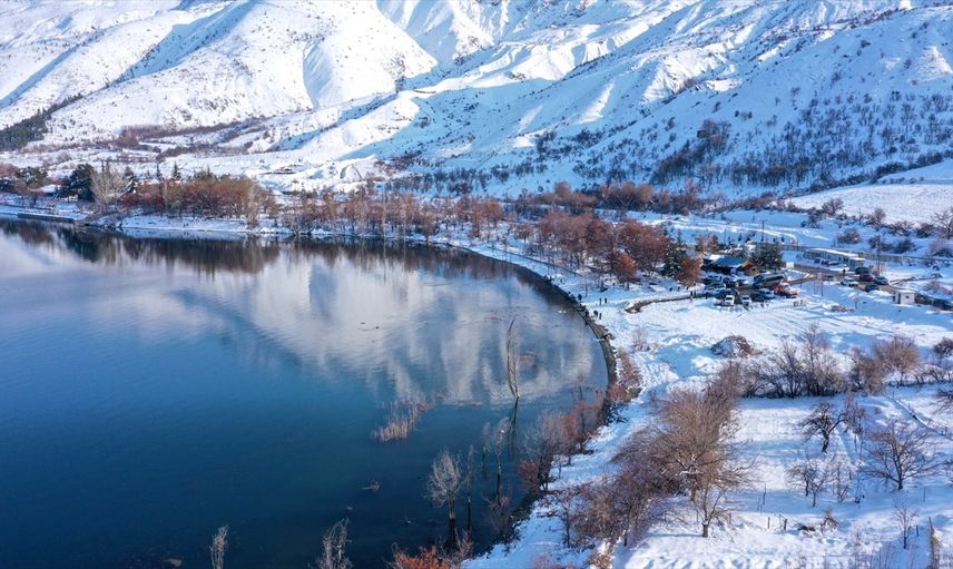 Yaklaşık 81 kilometrekarelik yüzey alanına sahip olan Hazar Gölü, çevresindeki karla kaplı dağlarla birleşerek muhteşem bir doğa manzarası sunuyor. Mavi ile beyazın buluştuğu bu görüntüyü görmek isteyen ziyaretçiler, hafta sonlarını göl kıyısındaki turistik tesislerde geçiriyor.