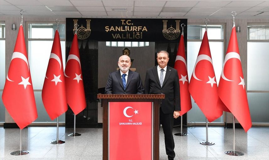 İçişleri Bakan Yardımcısı Mehmet Sağlam (solda), Şanlıurfa Valisi Hasan Şıldak'ı (sağda) ziyaret etti.
