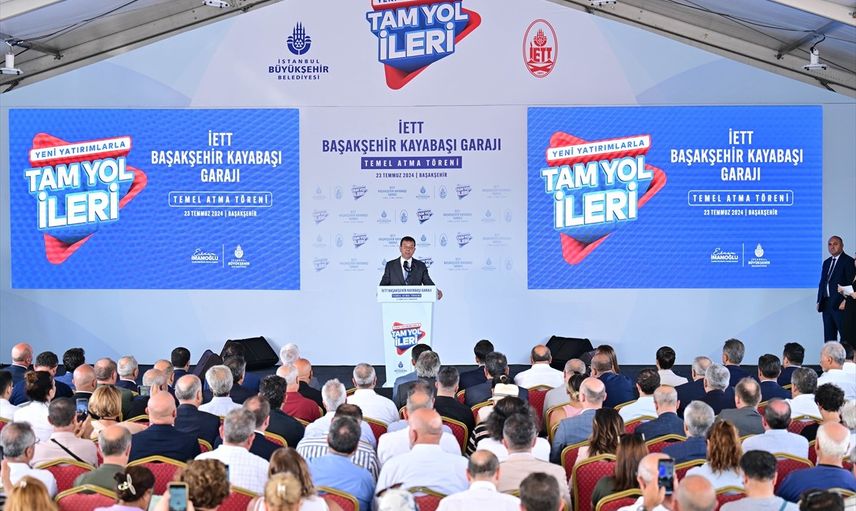 İstanbul Büyükşehir Belediye (İBB) Başkanı Ekrem İmamoğlu, İBB'nin İETT Başakşehir Kayabaşı Garajı temel atma törenine katılarak konuşma yaptı.