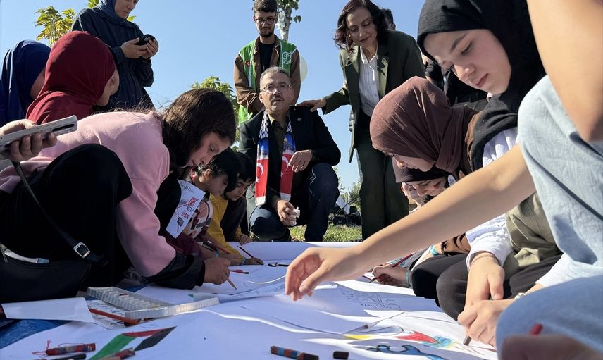Katılımcılar, İsrail'in saldırılarına karşı simgesel olarak kağıttan gemiler yaparak bunları gölete bıraktılar. Çocuklar, Filistin ve Gazze temalı resimler çizerek, İsrail’in uyguladığı soykırımı anlatan eserler ürettiler.
