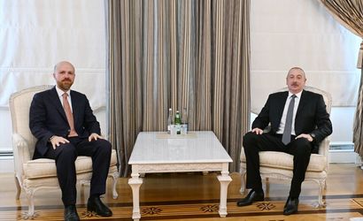 Azerbaycan Cumhurbaşkanı İlham Aliyev, resmi temaslarda bulunmak üzere Bakü'ye gelen Dünya Etnospor Konfederasyonu Başkanı Bilal Erdoğan'ı kabul etti.