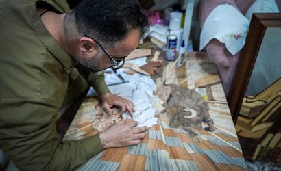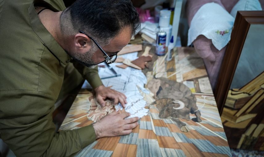 Iraklı ressam ve heykeltıraş Akil Feyli, ahşap parçalarına şekil verip bir araya getirerek oluşturduğu tablolarla resim sanatına yeni bir boyut kazandırıyor. Başkent Bağdat'ın güneyinde yer alan evinin mütevazi bir köşesinde kurduğu atölyesinde çalışan Feyli, AA muhabirine yoğun uğraş ve çaba gerektiren sanatını hakkında bilgi verdi. Tablolarını çizdiği tasarıma göre kesip şekil verdiği ahşap parçaları birleştirerek mozaik tekniğiyle oluşturduğunu belirten Feyli, 27 yıl önce başladığı bu sanata o dönemdeki bazı şartlardan dolayı bir süre ara verdiğini ifade etti.