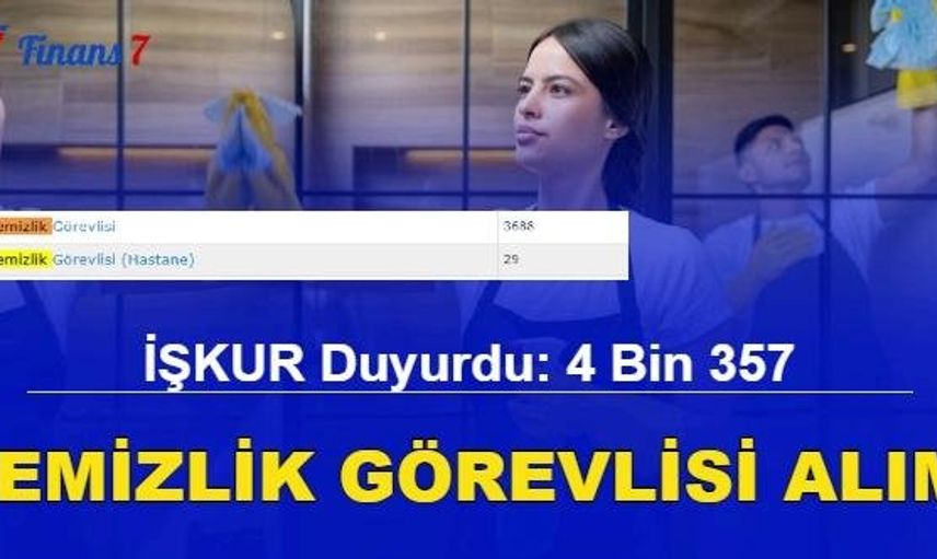 Türkiye İş Kurumu resmi internet adresi üzerinden yayınlanan son dakika açıklamasında temizlik personeli ve temizlik işçisi kadrolarına 4 bin 357 personel alımı yapacağına yer verildi. Yayımlanan duyurulara baktığımızda alımların en az ilköğretim mezunu adaylar arasından yapılacağı görülüyor. Başvurulara ilişkin şartlar ve başvuru bilgileri nedir?