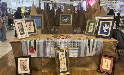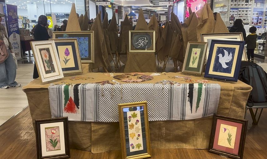 Hat sanatıyla hazırladığı tabloları satışa sunan Necla Güner Bağış, insanların duyarlı olması gerektiğini belirtirken, "Hep birlikte Gazze'ye umut olmak dileğiyle yola çıktık" diyerek bir çağrıda bulundu.