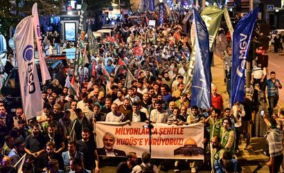 İnsan Hak ve Hürriyetleri İnsani Yardım Vakfı ile Gazze Dayanışma Platformu'nun da aralarında bulunduğu çeşitli sivil toplum kuruluşlarına üye grup, Hamas Siyasi Büro Başkanı İsmail Heniyye suikastını protesto etti. Fatih Camisi'nde akşam namazını kıldıktan sonra avluda toplanan grup, "Milyonlarca şehitle Kudüs'e yürüyoruz" yazılı pankart açtı.
