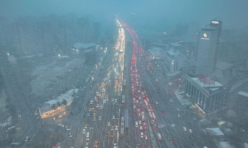 Fatih Sultan Mehmet Köprüsü'nün Ankara istikametinde, köprü girişi öncesi kar nedeniyle araç trafiği ağır ilerliyor. Şişli’de Fulya ve Merkez mahallelerindeki yokuşu çıkamayan araçlar, bazı caddeleri ulaşıma kapatmış durumda.