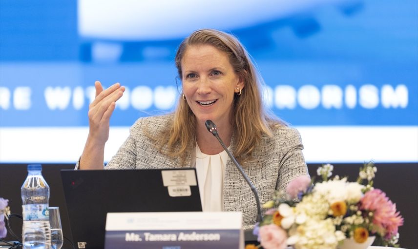 UNOCT Politika, Bilgi Yönetimi ve Koordinasyon Şubesi Bilgi Yönetimi ve Stratejik Destek Bölümü Şefi Tamara Anderson, BM tarafından 2006 yılında kabul edilen küresel terörle mücadele stratejisinin uluslararası işbirliğinin bugün hala en kapsamlı çerçevesi olduğuna işaret etti. Anderson, "Parlamenterler, hükümet ile toplum arasında köprü olmanın yanı sıra uluslararası düzeye uzanan bir köprü de olabilir," diyerek parlamenterlerin rollerine değindi.