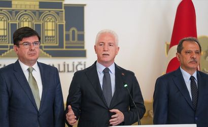 İstanbul Valisi Davut Gül, Fatih'teki Valilik binasında gerçekleştirilen emniyet verileri aylık değerlendirme toplantısında, bu yılın ilk 9 ayına ilişkin güncel emniyet verilerini açıkladı. Toplantıda, Vali Gül'e, Vali Yardımcısı Nail Anlar (sol 2), İl Jandarma Komutanı Korgeneral Yusuf Kenan Topcu (solda), İl Emniyet Müdürü Selami Yıldız (sağ 2) ile Sahil Güvenlik Marmara ve Boğazlar Bölge Komutanı Tümamiral Serkan Tezel (sağda) eşlik etti.