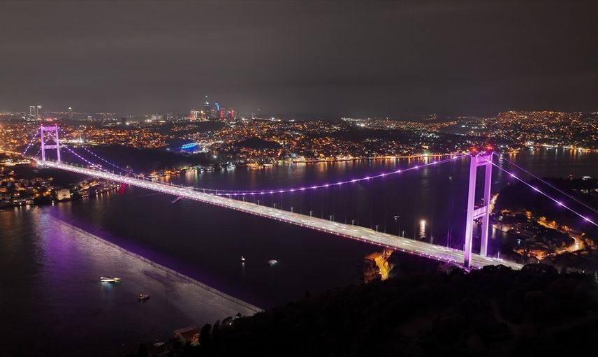 İstanbul'da Fatih Sultan Mehmet ve Yavuz Sultan Selim köprüleri, meme kanserinde farkındalığı artırmak amacıyla pembe renkle ışıklandırıldı.