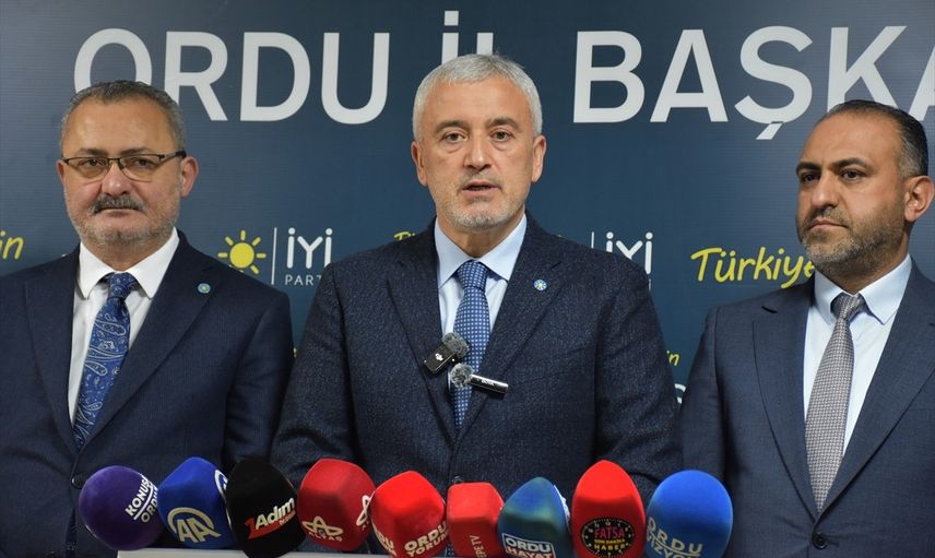 İYİ Parti Genel Başkan Yardımcısı Enver Yılmaz (ortada), partisinin Ordu İl Başkanlığında düzenlediği basın toplantısında açıklamalarda bulundu.