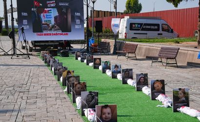 Etkinlik kapsamında, Gazze’de hayatını kaybeden çocukların fotoğraflarının yer aldığı bir sergi açıldı. Ayrıca, simgesel kanlı bebek kefenleri de sergide yer aldı. Ziyaretçiler, sanal gerçeklik gözlükleriyle Gazze sokaklarını deneyimleyerek, oradaki durumu daha yakından hissetti.