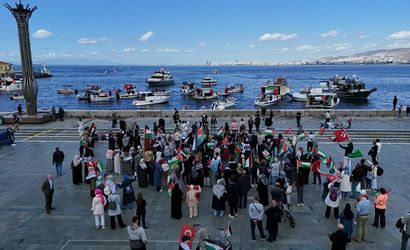 İzmir'de, Türk ve Filistin bayraklarıyla denize açılan tekneler Filistin ile Gazze'ye insani yardım ulaştırmak amacıyla yola çıkan ve İsrail'in saldırısına uğrayan Küresel Sumud Filosu'na destek verdi. Türk ve Filistin bayrakları asılan teknelere, meydandan toplanan İzmir Sivil Toplum Kuruluşları Platformu üyeleri de ellerindeki Türk ve Filistin bayraklarıyla destek verdi.