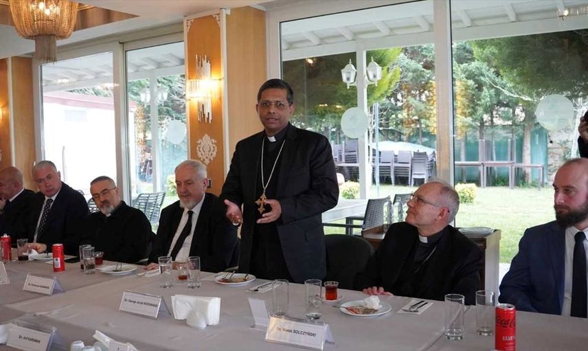 Kardinal George Jacob Koovakad, Latin Katolik Cemaati Ruhani Reisi Massimiliano, Kadıköy Rum Ortodoks Metropoliti Emmanuel Adamakis, Vatikan'ın Ankara Büyükelçisi Marek Solczynski ile diğer üst düzey yöneticilerin yer aldığı heyet, tarihi yapıyı gezerek yürütülen çalışmalarla ilgili yetkililerden bilgi aldı.