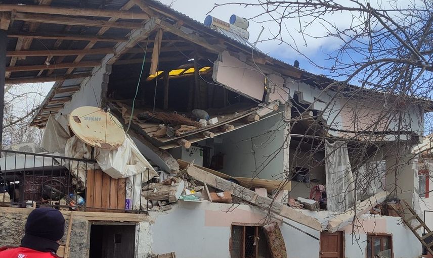 Patlama sonucu evin bazı duvarlarında ciddi zararlar meydana geldi.
