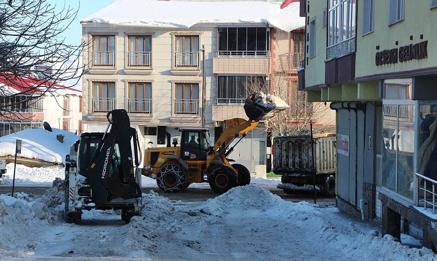 Karlıova Belediyesi, vatandaşların mağduriyet yaşamaması adına ana ve ara yollardaki kar yığınlarını iş makineleriyle belirli bölgelere toplama çalışması yürütüyor. İki gündür süren bu yoğun çalışmalarda, yaklaşık 100 kamyon kar ilçe dışına götürüldü.