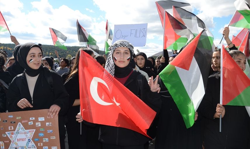Kars'ta, Filistin halkına destek amacıyla düzenlenen "Sarıkamış'tan Gazze'ye Selam Yürüyüşü" birçok vatandaşı bir araya getirdi.