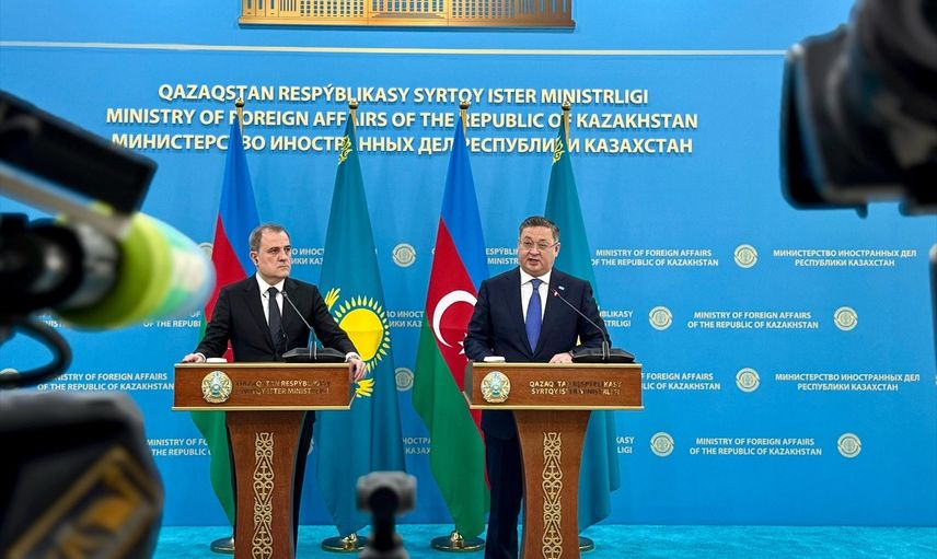 Kazakistan'da resmi temaslarda bulunan Azerbaycan Dışişleri Bakanı Ceyhun Bayramov (solda), başkent Astana'da Kazakistan Başbakan Yardımcısı ve Dışişleri Bakanı Murat Nurtleu (sağda) ile görüştü. Baş başa ve heyetler arası görüşmelerde bir araya gelen Nurtleu ve Bayramov, daha sonra iki ülke dışişleri bakanlıkları arasında 2025-2026 dönemi için eylem planını imzaladı.
