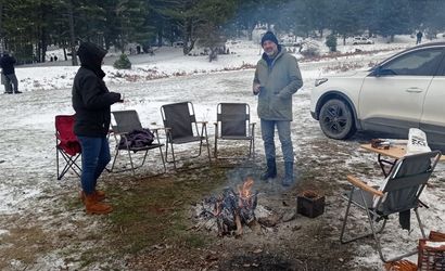 Balıkesir'in Edremit ve Havran ilçelerinin yüksek kesimlerinde yağan karda eğlenmek isteyenler, Kazdağları'nı tercih etti.