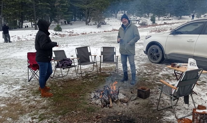 Eğlencenin devam ettiği bu bölgede, yaklaşık 10 santimetre kalınlığındaki kar üzerinde yürüyüş yapanlar da bulunuyor. Eğlenen ziyaretçilerden Mustafa Akıncı, "Güzel havanın keyfini çıkardık. Hafta sonu kaçamağı yapmak için çocukları getirdik. Ailece eğleniyoruz." şeklinde konuştu. Diğer bir aile üyesi Özlem Akıncı ise, "Çocukları eğlendirmek için buradayız. Karın tadını çıkarırken çok güzel bir gün geçiriyoruz." dedi.