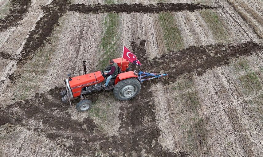 Yaklaşık 3 saat süren bir çalışmanın ardından çiftçi, traktörün pulluğu ile toprakta etkileyici bir iz bırakmayı başardı. Bu esnada AA ekibi, çalışmayı dron ile görüntüleme fırsatı buldu.